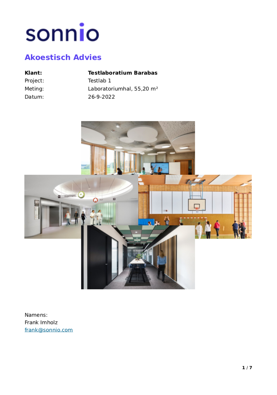 Het PDF rapport is per ruimte. Indien er bij een project meerdere ruimtes betrokken zijn, die akoestisch van elkaar verschillen, dient voor iedere ruimte een PDF rapport gegenereerd te worden.
