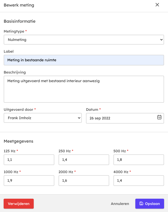 Nadat er bij een nieuwe of bestaande klant een project is vastgelegd en daarbij een ruimte, moet de huidige akoestiek van deze ruimte worden vastgelegd in Sonnio.